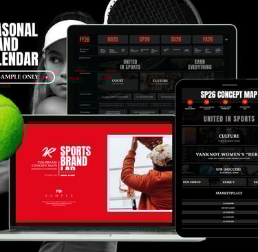 Sport-bred brand strategy systems, seasonal drop calendars, and plug-and- play campaign templates for creators, agencies, and founders who want to think and execute like the pros. Built by an ex-Nike strategist. Designed for real-world results.