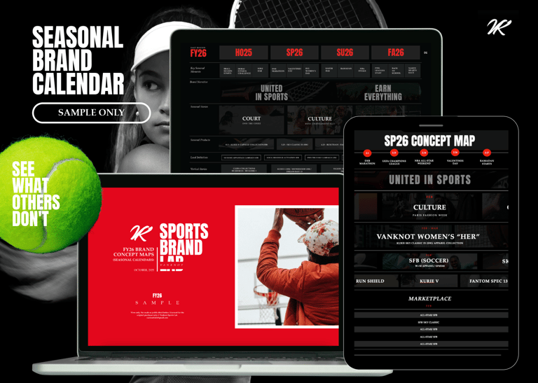 Our seasonal Brand OS drops give you high-level, sport-specific systems released at key moments of the year. Each drop include samples and an editable templates that aligns to the seasonal flow of sport, storytelling, and product cycles.